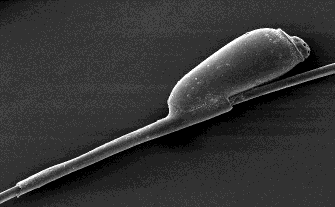 are "to the side of a hair shaft glued"
